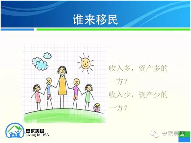 我们首先了解谁来移民:移民年龄大多集中在四五十岁左右,移民的首要目的是孩子的教育,由于大多数人在国内还有企业和投资,短时间还不能抛下国内的事业定居美国,而美国的绿卡要求一年内大多时间居住美国,还有美国严格的税收制度:所得税、社安医疗税、赠与税和遗产税,使全家移民成了很大的负担,甚至部分移民拿到绿卡后想要放弃绿卡。针对这个问题,建议准备移民的朋友提前规划,名下资产少、收入少的夫妻一方携子女移民,另一方退休后再移民,这样孩子接受了美国先进的教育,父母避免了被迫一年两次奔波美国和繁重的税收。