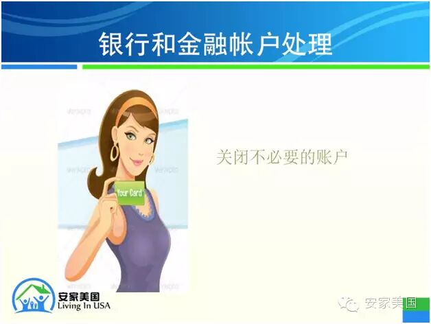 银行和金融账户的处理:金融账户包括股票、基金、PE、信托、理财、有现金值的保险等。美国的海外金融账户和银行账户的申报法案,只要海外全部银行账户金额超过1万美元,就要申报所有账户金融机构名字、地址、帐号、年度最高金额和回报。由于各种原因,大部分移民拥有许多账户,申报工作繁琐还增加报税费用,建议账户整合,关闭不必要的账户,留下三四个即可。股票、基金、理财收益中国不交增值税但美国交,如果金额较大且回报好,可以先转赠亲友,以后再赠与回来,避免美国缴税。