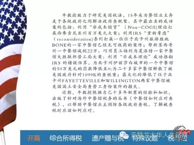 主持人:牛教授是美国三角会计事务所的创始人,已致力于研究美国税法15年之久